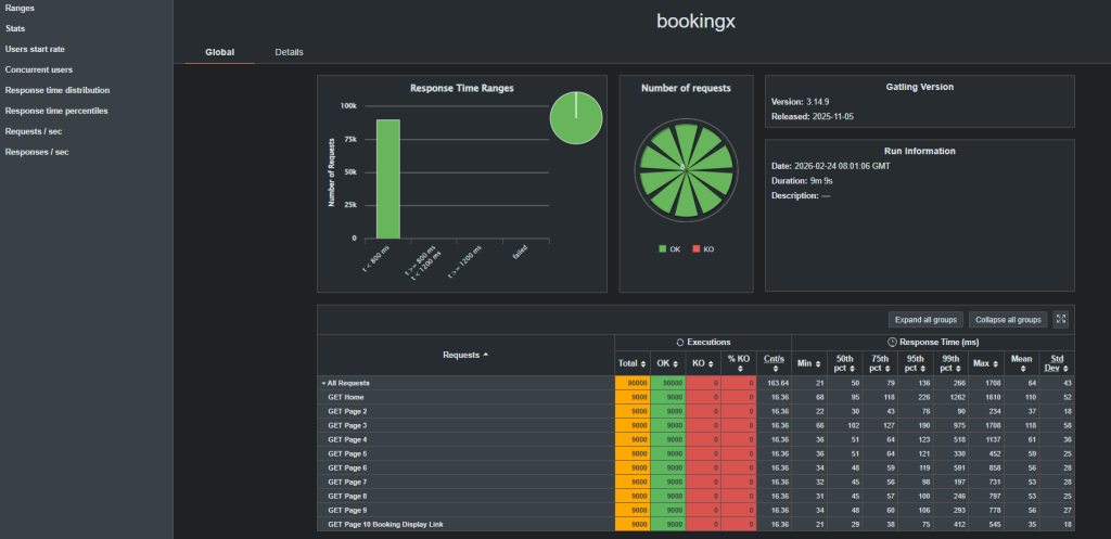 bookingx ผ่านการทดสอบ Performance รองรับ 200 Concurrent Users แบบไร้ Error ทีมงานได้ทำการทดสอบประสิทธิภาพของระบบ bookingx โดยใช้เครื่องมือ Gatling เพื่อประเมินความสามารถในการรองรับผู้ใช้งานจำนวนมากพร้อมกัน