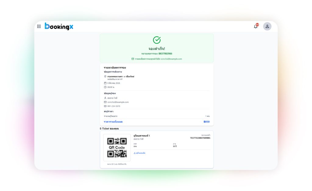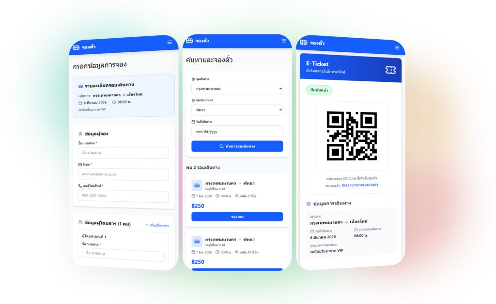 - ออกตั๋วอิเล็กทรอนิกส์ (E-Ticket) พร้อม QR Code