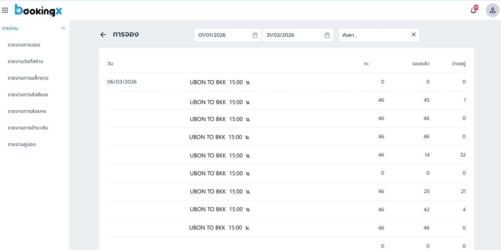 - ดูรายงานยอดจองรายวัน รายสัปดาห์ รายเดือน