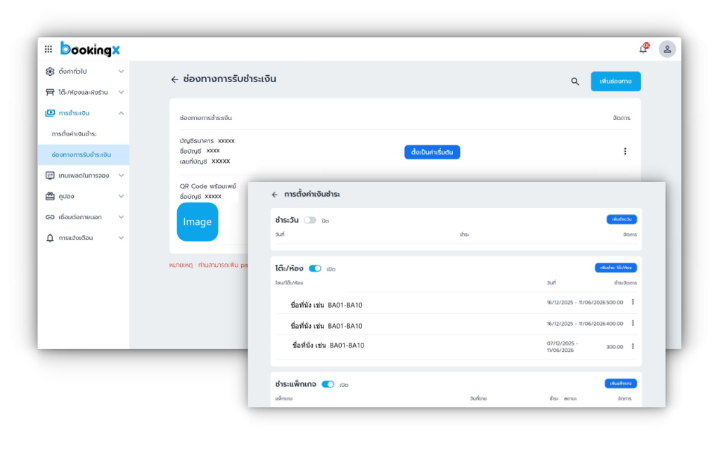 - รองรับการชำระเงินออนไลน์ (Payment Gateway / โอนเงิน / QR พร้อมเพย์)