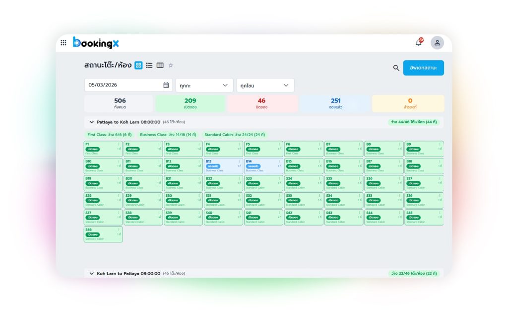 - แสดงสถานะว่าง/จองแล้ว (เรียลไทม์)