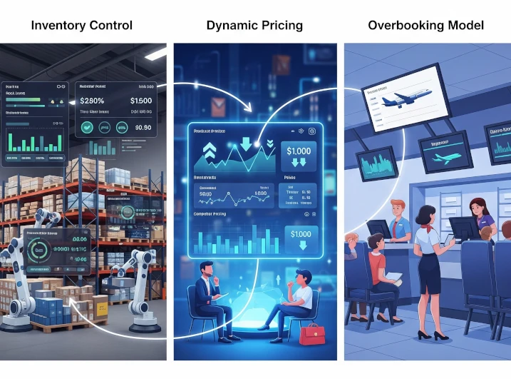 สำหรับการขายตั๋วประเภทต่างๆ เราจะใช้โมเดลที่เรียกว่า การควบคุมจำนวนการจอง/สินค้า การตั้งราคาระบบอัตโนมัติ และการบริหารการจองเกินจำนวนสินค้า (overbooking/WL) ทั้งนี้ระบบนี้อนุญาตให้กำหนดราคาที่มีความยืดหยุ่นเช่น ราคาทั้งหมดของระบบ และ อาจจะเพิ่มขึ้นหรือลดลงตาม demand ที่เข้ามารวมถึงการจอง อาจจะเกิดกว่าสินค้าที่มีได้ หรือว่า overbooking ได้โดยมีการใช้ waiting list เข้ามาช่วย พร้อมระบบการแจ้งเตือนเมื่อสินค้า ได้รับการจัดสรร